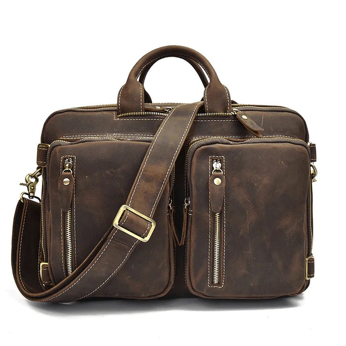 Elevate your everyday carry with our Vintage-Inspired Leather Briefcase Backpack, a seamless blend of timeless design and modern functionality. Crafted for the high-achieving man on the move, this multi-purpose leather bag effortlessly converts from a classic messenger to a sleek backpack—perfect for the office, travel, or the outdoors.